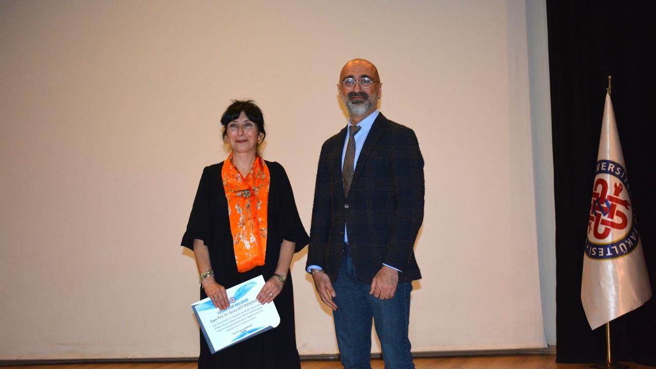 Söyleşinin ardından moderatör Prof. Dr. Tahir Atik, katkılarından dolayı Prof. Dr. Sevinç Gök İpekçioğlu'na teşekkür belgesi takdim etti. Etkinliğe, Tıp Fakültesi Dekan Yardımcıları Prof. Dr. Burcu Barutçuoğlu ve Doç. Dr. Güneş Ak'ın yanı sıra çok sayıda akademisyen, öğrenci ve idari personel katıldı.