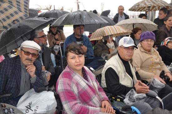 İzmir'de, 32 engelli derneği bir araya gelerek evde bakım yardımı ve engelli maaşlarına dair mevcut yasalardaki mağduriyetlerin giderilmesi için eylem gerçekleştirdi. Bugün saat 13:00'te Konak Meydanı'nda düzenlenen etkinlikte, yaklaşık 100 kişi, kaybettikleri haklarını kazanmak ve yeni haklar elde etmek amacıyla toplandı. Eylemde, bazı katılımcılar tekerlekli sandalye ile, bazıları koltuk değneği ile, bazıları ise aileleriyle birlikte yer aldı. Engelli vatandaşlar, 'Kanunlar hâlâ değişmedi, uyumuyoruz, uyarıyoruz' ve 'Ayrıcalık değil, adil yasa istiyoruz' gibi sloganlar atarak taleplerini dile getirdiler. Yağmurlu havaya rağmen yapılan basın açıklaması, engellilerin önünde bir engel oluşturmadı.