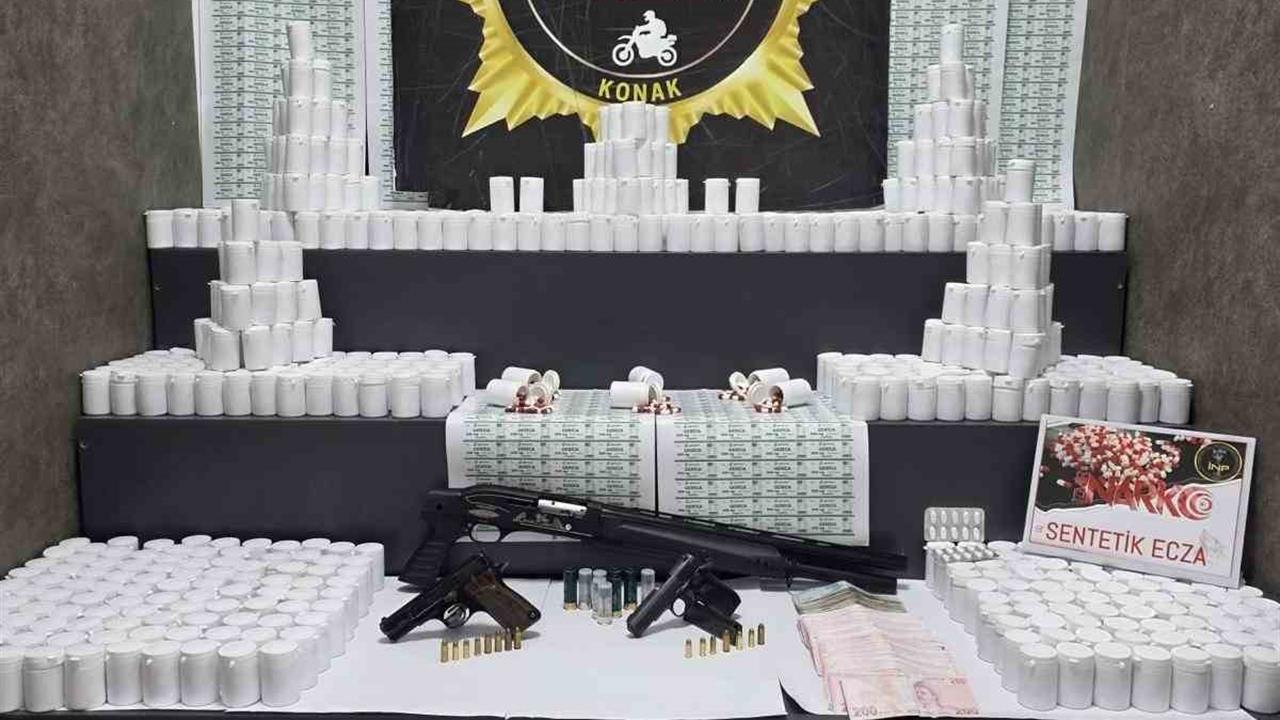Gerçekleştirilen aramalarda, 108 bin 472 adet sentetik ecza, 1 adet pompalı tüfek ve tüfeğe ait 9 adet dolu kartuş, 2 adet ruhsatsız tabanca ve çok sayıda fişek ile suçtan elde edildiği değerlendirilen 75 bin 100 TL nakit para ele geçirildi.