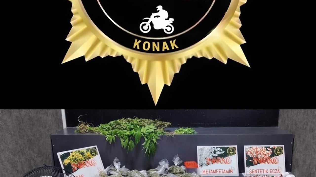 İzmir'in Konak ilçesinde, Narkotik Suçlarla Mücadele Şube Müdürlüğü'ne bağlı Narko Alan ekipleri, uyuşturucu madde imalatını önlemek amacıyla düzenli denetim ve araştırmalar yapmaktadır. Bu çerçevede, ekipler, belirli bir adreste uyuşturucu üretimi için bitki yetiştirildiği bilgisini aldı. Yürütülen çalışmalar sonucunda, şüpheli bir evde sera sistemi kurulduğu tespit edildi. Olay yerine giden polis ekipleri, evde gerçekleştirdikleri aramada 416,06 gram esrar, 40 kök Hint keneviri, 7 gram kenevir tohumu, 5,54 gram metamfetamin, 54,56 gram kokain ve 105 adet sentetik ecza ele geçirdi. Ayrıca, kenevir yetiştirmek için kullanılan çeşitli malzemelere de el konuldu. Operasyon sırasında evde bulunan bir şüpheli gözaltına alındı. Gözaltındaki işlemlerinin ardından adliyeye sevk edilen şüpheli, mahkeme tarafından tutuklanarak cezaevine gönderildi.
