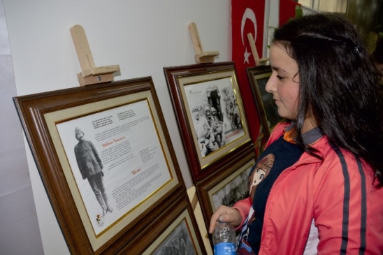 İzmir'in Torbalı ilçesinde, Çanakkale Zaferi’nin 100. yılı dolayısıyla düzenlenen 'Dünden Bugüne Şehitler' sergisi, öğrencilerden büyük ilgi görüyor.