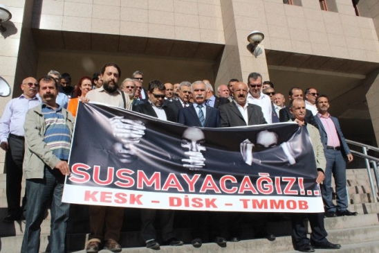 DİSK, KİSK ve TMMOB, İzmir'de 2022 yılı Mart ayında gerçekleştirilen Berkin Elvan eylemine katılan üç sendika üyesi hakkında "Cumhurbaşkanına hakaret" iddiasıyla açılan davaya karşı ortak bir basın açıklaması yaptı. Açıklamada, DİSK Ege Bölge Temsilcisi Memiş Sarı, eski yönetim kurulu üyesi Ali Rıza Duran ve KESK Dönem eski Sözcüsü Abdullah Tunalı'nın hedef alındığı vurgulandı. Duruşma öncesinde İzmir Büyükşehir Belediye Başkanı Aziz Kocaoğlu ve CHP İzmir Milletvekili Alaaddin Yüksel ile diğer sendikacılar, davanın barışçıl bir eyleme katılma sonucu açıldığını belirtti. Açıklamada, “Berkin Elvan'ın ölümünün ardından gerçekleşen ve polis şiddetine maruz kalan eylem tamamen meşrudur. Yapılan emniyet soruşturmaları, Toplantı ve Gösteri Yürüyüşleri Kanunu'na aykırı olarak başlamış ve sonrasında 'görevi başındaki polise mukavemet' suçlamasıyla devam etmiştir” denildi. Ayrıca, sendikalar, toplumsal muhalefetin susturulmaya çalışıldığını ve bu durumun kabul edilemez olduğunu ifade etti. “Ölümlerden sorumlu olanlar yargılanmazken, demokratik talepleri dile getirenler hedef alınıyor. Ancak biz susmayacağız” ifadeleriyle açıklama sonlandırıldı.