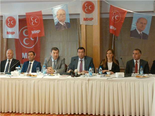 Toplantıya MHP İzmir İl Başkanı Necat Karataş ve 2. bölge milletvekili adayları da katıldı.