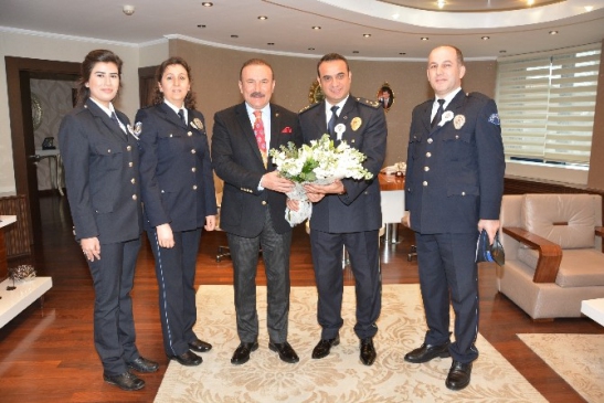 İzmit İlçe Emniyet Müdürü Mehmet Karakaş, Türk Polis Teşkilatı'nın 170. kuruluş yıldönümü nedeniyle Belediye Başkanı Dr. Nevzat Doğan'ı ziyaret etti. Ziyaret sırasında Başkan Doğan, polis teşkilatının önemli görevler üstlendiğini vurgulayarak, “Emniyet teşkilatımız, asırlık bir kuruluş olup, güvenliğimiz için büyük bir öneme sahip. Şehrimiz, güvenlik güçleriyle uyum içinde çalışıyor. Bu zorlu görevdeki tüm polislerimize başarılar diliyoruz. Huzur, her şeyin temelidir. Ayrıca, bu kutsal görevde şehit olanları rahmetle anıyorum. Türk Polis Teşkilatı'nın 170. yılını kutlarken, onların önemli katkılarını asla unutmayacağız” ifadelerini kullandı.