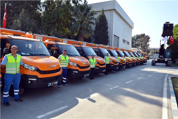 İZMİR - İzmir Büyükşehir Belediyesi İZSU Genel Müdürlüğü, Bütünşehir Yasası ile 2014 yılında 30 Mart yerel seçimlerinin ardından sınırlarına bağlanan 9 yeni ilçede kurduğu müdürlüklerle su, kanal ve abone hizmetlerini tüm hızıyla sürdürüyor. İZSU son olarak, su arızalarının giderilmesi, yeni su bağlanması, branşman yenileme ve su kaçaklarının azaltılması çalışmalarını daha süratli yapabilmek için araç filosunu 44 adet su arıza ve bakım aracı ile takviye etti. 6 milyon 614 bin liralık yatırımla satın alınan araçlardan 4’ü merkezde, 40’sı ise Çeşme, Karaburun, Dikili, Bergama, Kiraz, Kınık, Beydağ, Tire ve Ödemiş’te hizmet verecek. Satın alınan araçlardan 22’i hizmet vermeye başlarken, 20’sinin yıl sonunda geleceği bildirildi. İZSU ayrıca, kent genelinde kazı işlerinde kullanılmak üzere 2.8 milyon liralık yatırımla 4’ü lastikli, 3’ü paletli olmak üzere 7 ekskavatör de satın aldı.