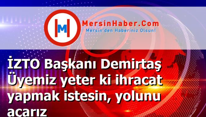 İZTO Başkanı Demirtaş, Türkiye’nin istenen büyüme rakamlarını yakalaması ve istihdam sağlaması için ihracatın büyük önem taşıdığını söyledi. Son bir yıldır düşen büyüme oranlarını yükseltmek için ihracatı arttırmak gerektiğini belirterek, “İhracatın ülkemiz ekonomisinde bu denli önem taşımasına paralel olarak, Uluslararası İlişkiler Müdürlüğümüz bünyesinde bu yılbaşında Uluslararasılaştırma ve Dış Ticaret Şefliği'ni kurduk. Bu yeni birimimiz, üyelerimize ürüne özel ihracat pazar araştırması, nasıl ihracatçı olunacağı, dış ticarette ödeme ve teslim şekilleri, ihracata yönelik devlet destekleri, uluslararası sözleşmelerde dikkat edilecek hususlar, ihracatta kullanılan belgeler, ihracatta fiyatlandırma gibi konularda danışmalık hizmeti sunuyor.” dedi.