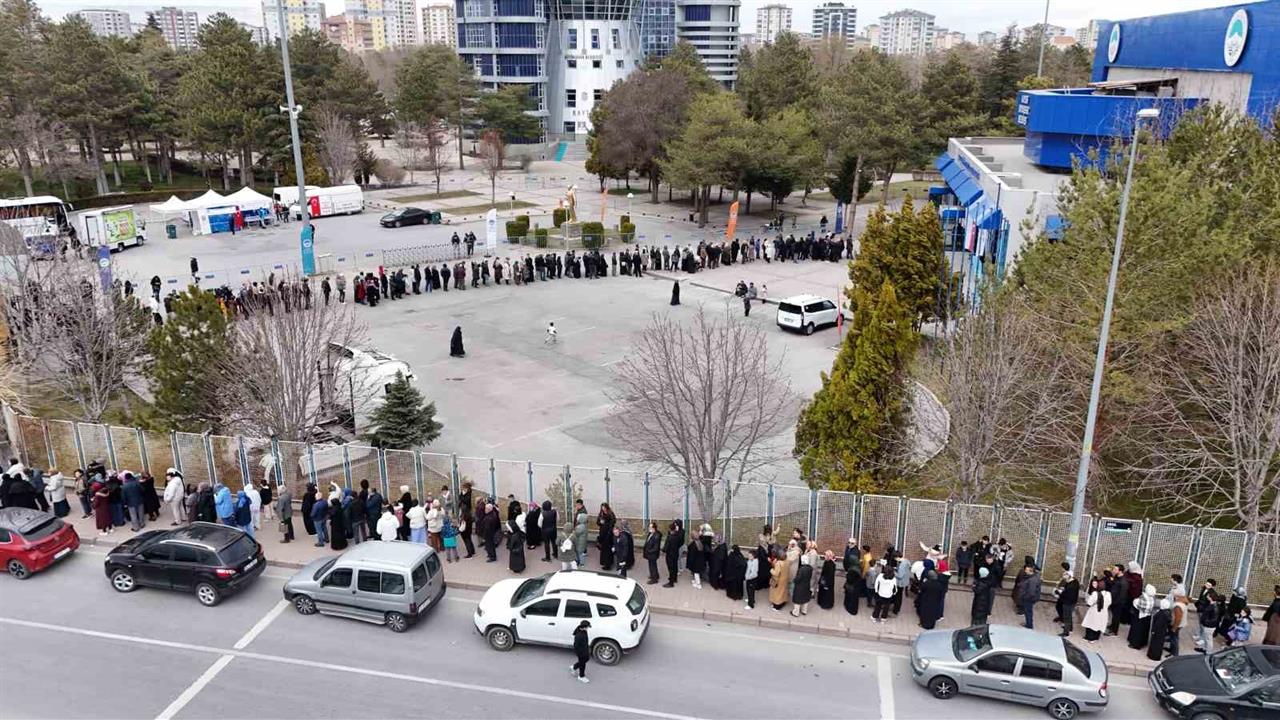 Kayseri'de, Kutsal Emanetler ve Vakıf Eserleri Sergisi, bu yıl Kadir Gecesi’nde yoğun bir ilgiyle karşılaştı. Sergide 99 nadide eser sergilendi ve vatandaşlar, bu eserleri görebilmek için sabaha kadar süren kuyruklar oluşturdu. Dünya Ticaret Merkezi’nde gerçekleştirilen sergi, gecenin ilerleyen saatlerine kadar açık kaldı. İçeri girebilmek için sıra bekleyen Osman Güneş, "Bir buçuk saattir bekliyoruz. Bu heyecanı yaşamak istiyoruz. Ramazan ayında, Kadir Gecesi'ndeyiz. Bu maneviyattan feyz almaya geldik. İnşallah feyzimizi alacağız. Çok merak edenler var, keşke imkan olsa da her zaman görebilsek. Bu imkanları değerlendirmemiz lazım" şeklinde konuştu. Yozgat’tan sergiye gelen bir başka vatandaş ise, "Şuanda maneviyat çok yoğun. Çok sıra var ama duygular da çok güzel" ifadelerini kullandı.