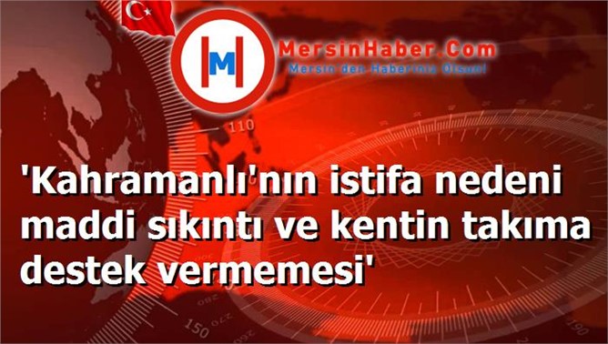 MERSİN - Süper Lig'in sıkıntılı ekiplerinden Mersin İdmanyurdu'nda Kulüp Başkanı Ali Kahramanlı'nın görevinden istifa etmesinin nedenini açıklayan Basın Sözcüsü Ayhan Erdem, "Kamuoyu çok iyi biliyor ki bu istifanın nedeni maddi sıkıntılar ve kentin takıma destek vermemesidir." dedi.