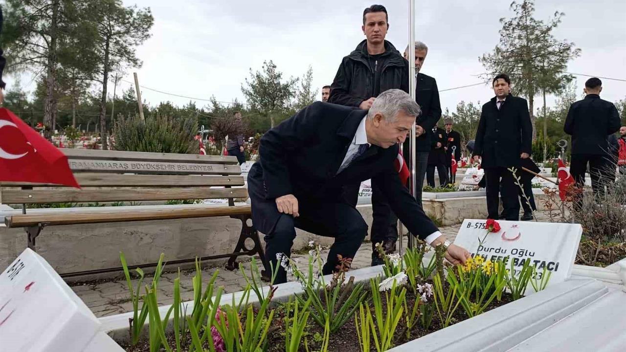 Kahramanmaraş'ta Ramazan Bayramı öncesi gerçekleştirilen anma programı, şehitlik ve deprem şehitleri mezarlığında gerçekleştirildi. Anma etkinliğine Kahramanmaraş Valisi Mükerrem Ünlüer ile şehir protokolü katılarak destek verdi. İlk olarak Şeyh Adil Şehitliği'nde düzenlenen programda, Kur'an-ı Kerim okunarak dualar edildi. Ardından, şehir protokolü tarafından şehitlerin mezarlarına karanfiller bırakıldı.