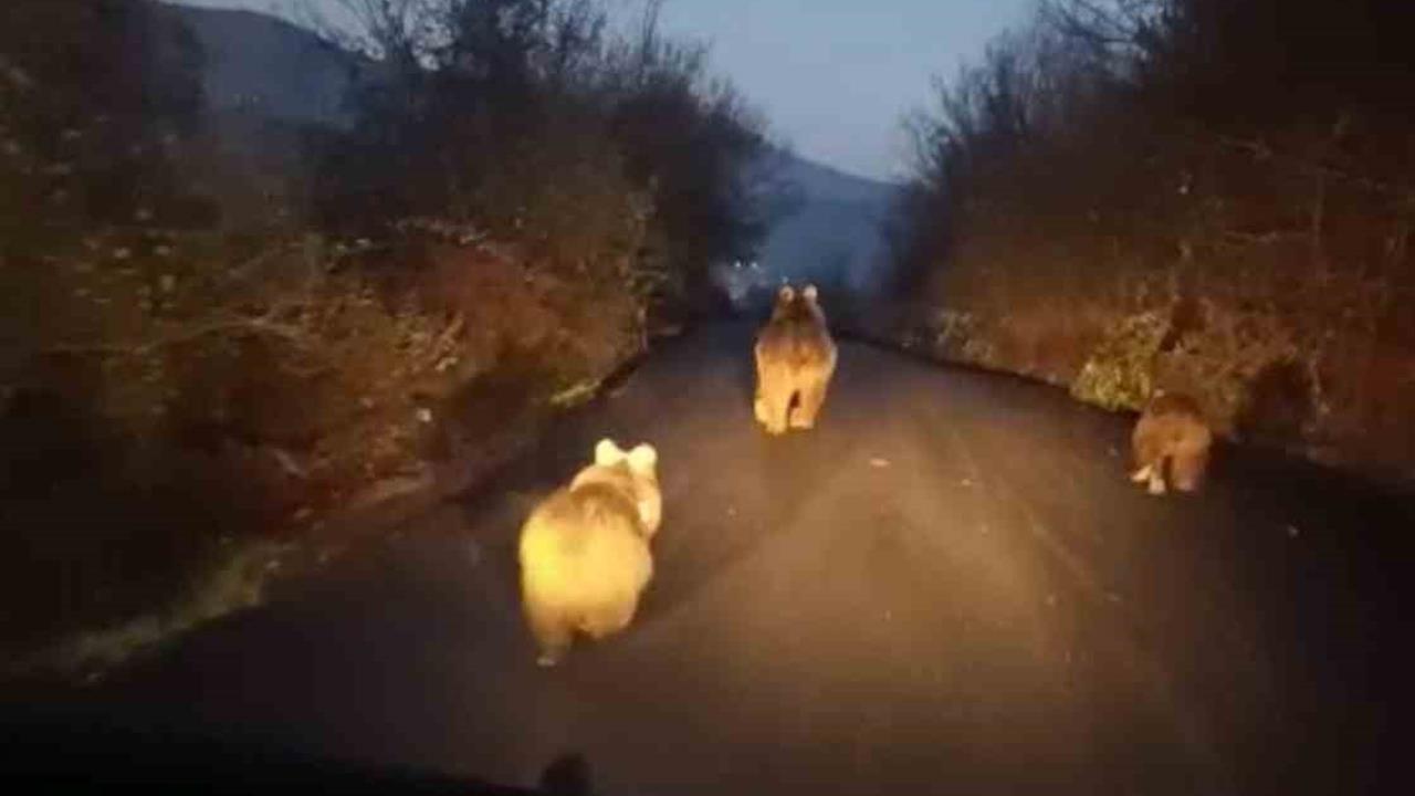 Karabük’ün Yenice ilçesine bağlı Bağbaşı köyünde bir sürücü, yolda hareket eden anne ayı ve yavrularını fark etti. Ayı ailesinin görüntüleri, sürücünün cep telefonuyla kaydedildi. Görüntülerde, anne ayı ve yavruları yolda koşarken görülüyor. Araç görünce paniğe kapılan ayılar, hızla oradan uzaklaştı. Bu anlar, doğa severler için ilginç bir deneyim sunuyor.