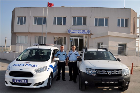 BURSA - Bursa Karacabey İlçe Emniyet Müdürlüğü'nün Trafik ve Asayiş ekiplerine son model 2 adet araç hibe edildi.