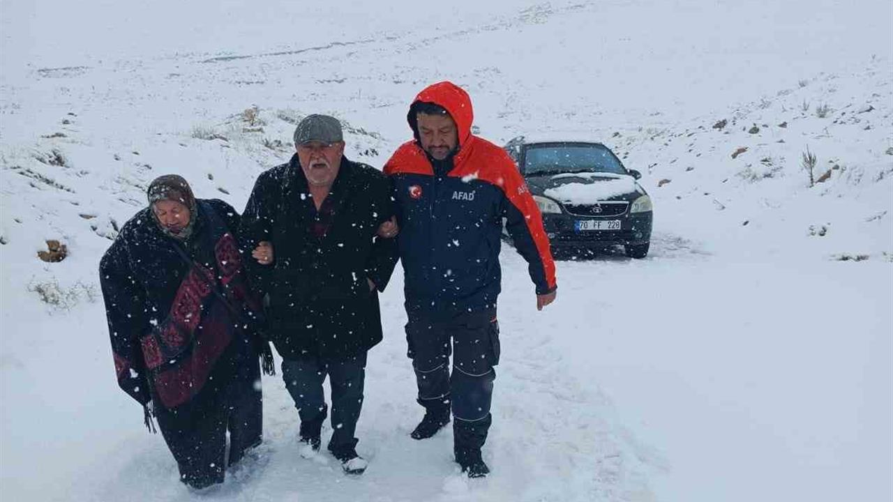 Karaman'da yoğun kar yağışı, birçok yolda etkili olurken, bu durum özellikle Güldere köyü yolunda iki otomobilde bulunan 4 kişinin mahsur kalmasına neden oldu. Edinilen bilgilere göre, araçların yolda kalması üzerine durumu fark eden vatandaşlar, hemen yetkililere ihbarda bulundu.