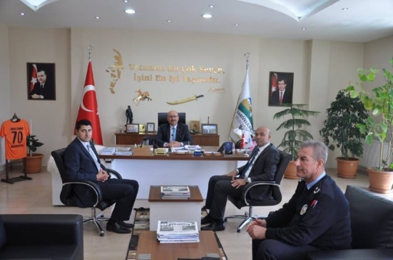 Karaman Sarıveliler'de, İl Emniyet Müdürü Mehmet Şahne, Belediye Başkanı Hayri Samur'u makamında ziyaret ederek, ilçeye sunduğu hizmetlerden dolayı tebrik etti.