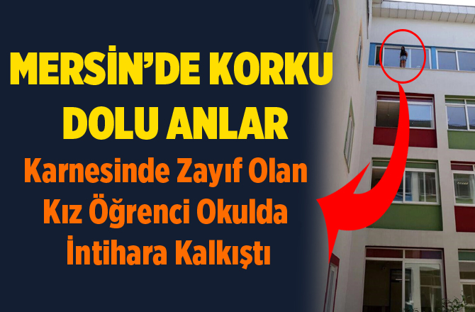 Merkez Akdeniz İlçesi'ndeki Cengiz Topel Ortaokulu 6'ncı sınıf öğrencisi Z.S., karnesini aldı. Zayıf notların bulunduğu karnesine baktıktan sonra ailesinin kendisine kızacağından korkan kız öğrenci, okulun 4'üncü katındaki pencereye çıktı.