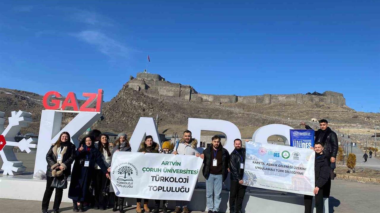 Artvin Çoruh Üniversitesi Türkoloji Topluluğu, ÜNİDES desteğiyle "Kars’ta Aşıklık Geleneği Üzerine Uygulamalı Türk Dili Eğitimi" projesini hayata geçirdi. Proje kapsamında, Kars’a gelen öğrenciler, Kars Aşıklar Kültür Evinde Aşık Gültekin Bulutoğlu ve Aşık Sabri Yokuş ile bir araya gelerek, aşıklık geleneği hakkında derinlemesine bilgi edindiler. Ayrıca Kafkas Üniversitesi'nden Prof. Dr. Adem Balkaya ile iştişare yaparak dersler aldılar. Proje sonunda, Artvin ekibi Kars'ın tarihi ve kültürel mekanlarını gezerek bölge hakkında daha fazla bilgi sahibi oldular.