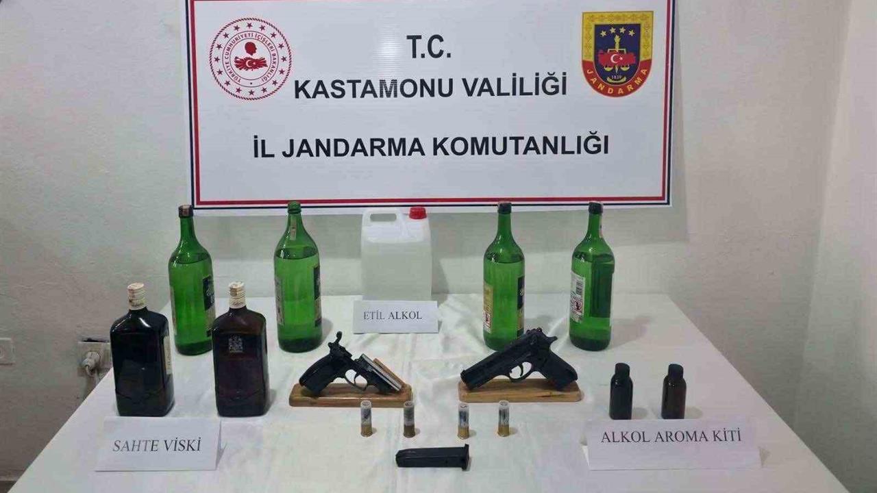 Kastamonu Merkez ilçesinde, İl Jandarma Komutanlığı'nın yürüttüğü "kaçakçılıkla mücadele" çalışmaları kapsamında önemli bir operasyon gerçekleştirilmiştir. Operasyon sırasında, şüphelilerin sahte içki üretiminde kullandıkları malzemeler ele geçirilmiştir. Edinilen bilgilere göre, 83 litre etil alkol ve 22 adet sahte viski, 10 litre sahte rakı ile birlikte 5 adet alkol aroma kiti ve 2 adet kurusıkı tabanca da bulunmuştur.
