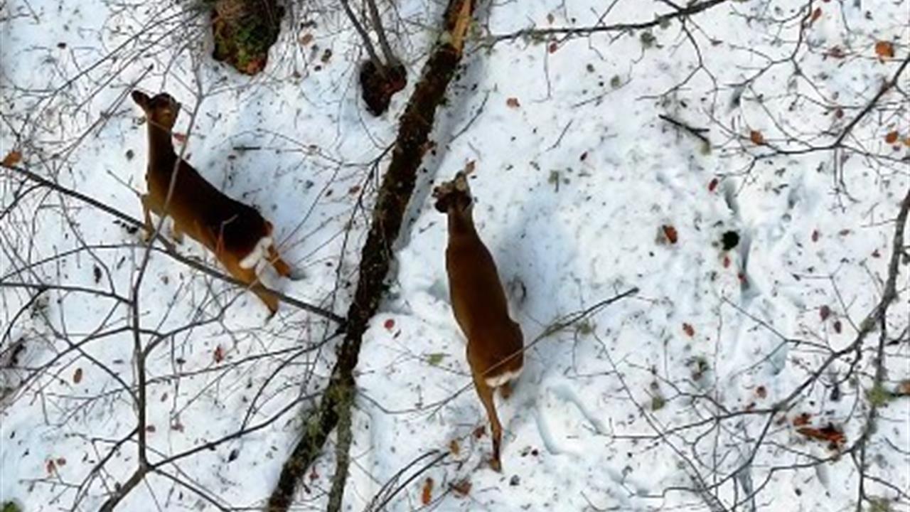 Kubilay Onurcan Çalık, çekim yaptığı sırada karla kaplı arazide ilerleyen karacaları fark etti. Yiyecek arayışı içinde sessizce hareket eden karacalar, buldukları yiyecekleri tüketirken, anları dron ile kaydedildi. Görüntülerde, karacaların çevreyi dikkatlice kontrol ederek hareket ettiği, zaman zaman durup besin aradığı anlar dikkat çekti.