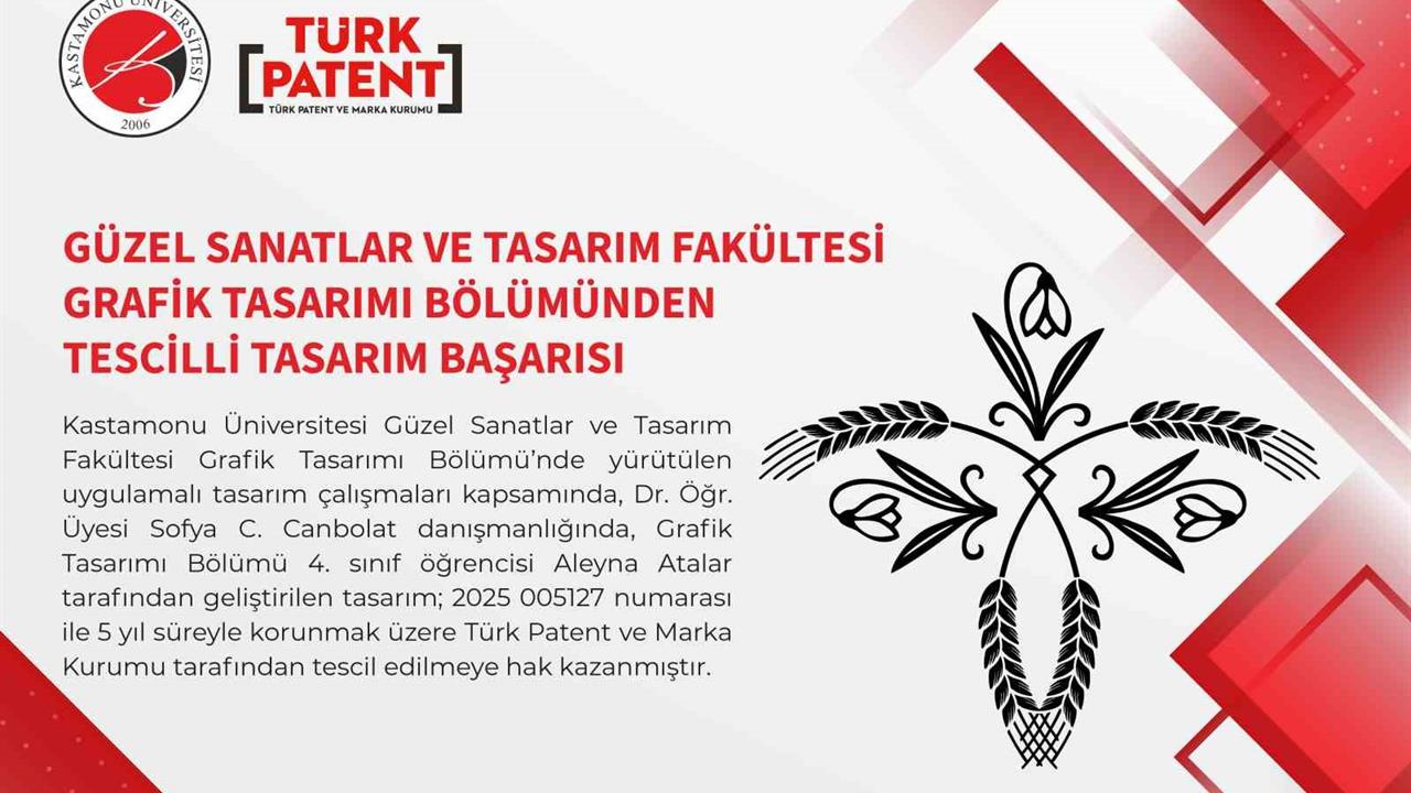 Kastamonu Üniversitesi Güzel Sanatlar ve Tasarım Fakültesi öğretim üyelerinden Dr. Öğr. Üyesi Sofya C. Canbolat’ın danışmanlığında 4. sınıf öğrencisi Aleyna Atalar tarafından hazırlanan bu tasarım, Türk Patent ve Marka Kurumu tarafından 5 yıl süreyle tescillendi. Tasarımın amacı, kültürel mirası çağdaş grafik tasarım anlayışıyla yeniden yorumlamaktır. Öğrencilerin yenilikçi üretimlerinin ulusal düzeyde resmî koruma kazanması, uygulamalı eğitimin kalitesini de gözler önüne sermektedir.