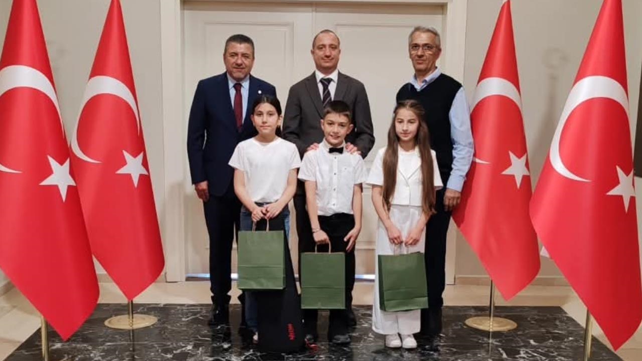 23 Nisan Ulusal Egemenlik ve Çocuk Bayramı kutlama programı etkinlikleri kapsamında Kazım Taşkın İlkokulu öğrencileri 3/B sınıf öğrencileri Öykü Bostan, Fethi Göktuğ ve 4/A sınıf öğrencisi Meryem Sare Güney, Tarsus Kaymakamı Mehmet Ali Akyüz'ü makamında ziyaret ettiler.