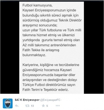 Spor Toto Süper Lig'de mücadele eden Suat Altın İnşaat Kayseri Erciyesspor, Fatih Tekke ile anlaşma sağladı. Edinilen bilgilere göre, genç teknik adamın kulüple olan sözleşmesinin bu hafta içinde imzalanması planlanıyor. Fatih Tekke, daha önce de Türkiye’nin çeşitli takımlarında teknik direktörlük yapmış bir isim olarak dikkat çekiyor. Kayseri Erciyesspor, bu anlaşma ile birlikte takımın hedeflerine ulaşma yolunda önemli bir adım attı.