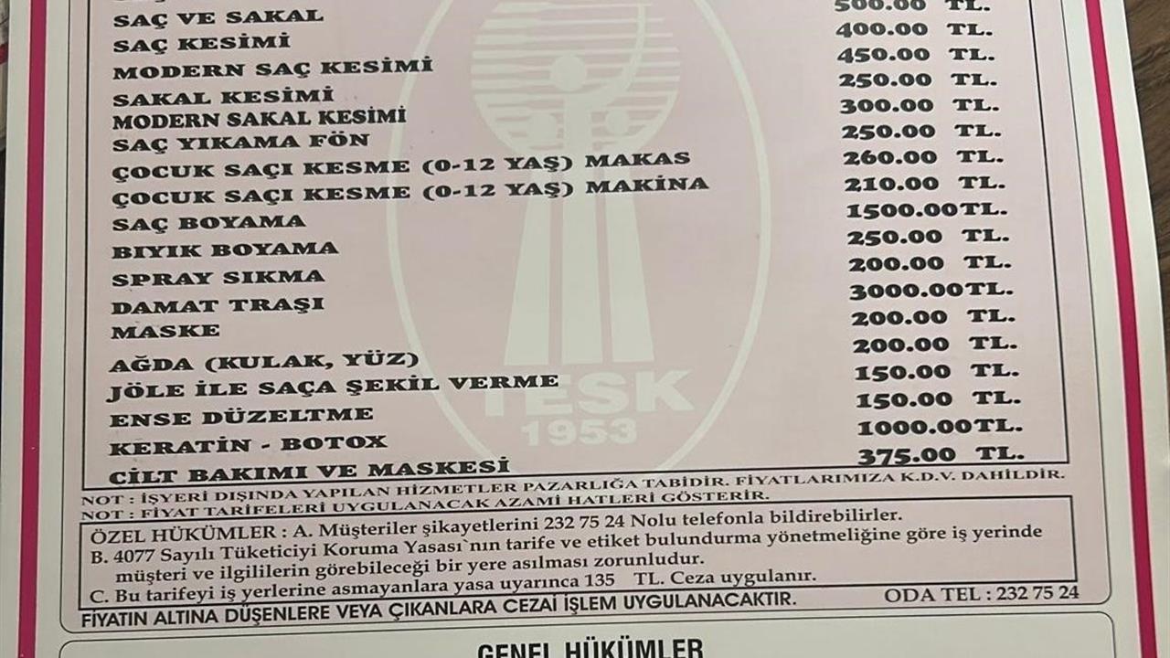 Kayseri'de berber ve kuaför fiyatları güncellenerek yeni tarifeler belirlendi. Yapılan zamla birlikte, saç kesimi ücreti 700 TL'ye yükseldi. Açıklanan fiyat listesine göre, saç ve sakal yıkama fön 700 TL, saç ve sakal kesimi 500 TL olarak belirlendi. Ayrıca modern saç kesimi 450 TL, sakal kesimi 250 TL, modern sakal kesimi ise 300 TL oldu. Çocuk saç kesimi (0-12 yaş) makas ile 260 TL, makine ile 210 TL olarak fiyatlandırıldı. Saç boyama 1,500 TL, bıyık boyama 250 TL, sprey sıkma 200 TL, damat tıraşı 3,000 TL, maske 200 TL, ağda (kulak, yüz) 200 TL, jöle ile saça şekil verme 150 TL, ense düzeltme 150 TL, keratin-botoks uygulaması 1,000 TL ve cilt bakımı ile maskesi 375 TL olarak güncellendi. Yapılan zamlar, berber ve kuaför hizmetlerini etkileyerek müşterilerin bütçelerinde değişiklikler yaratacak.