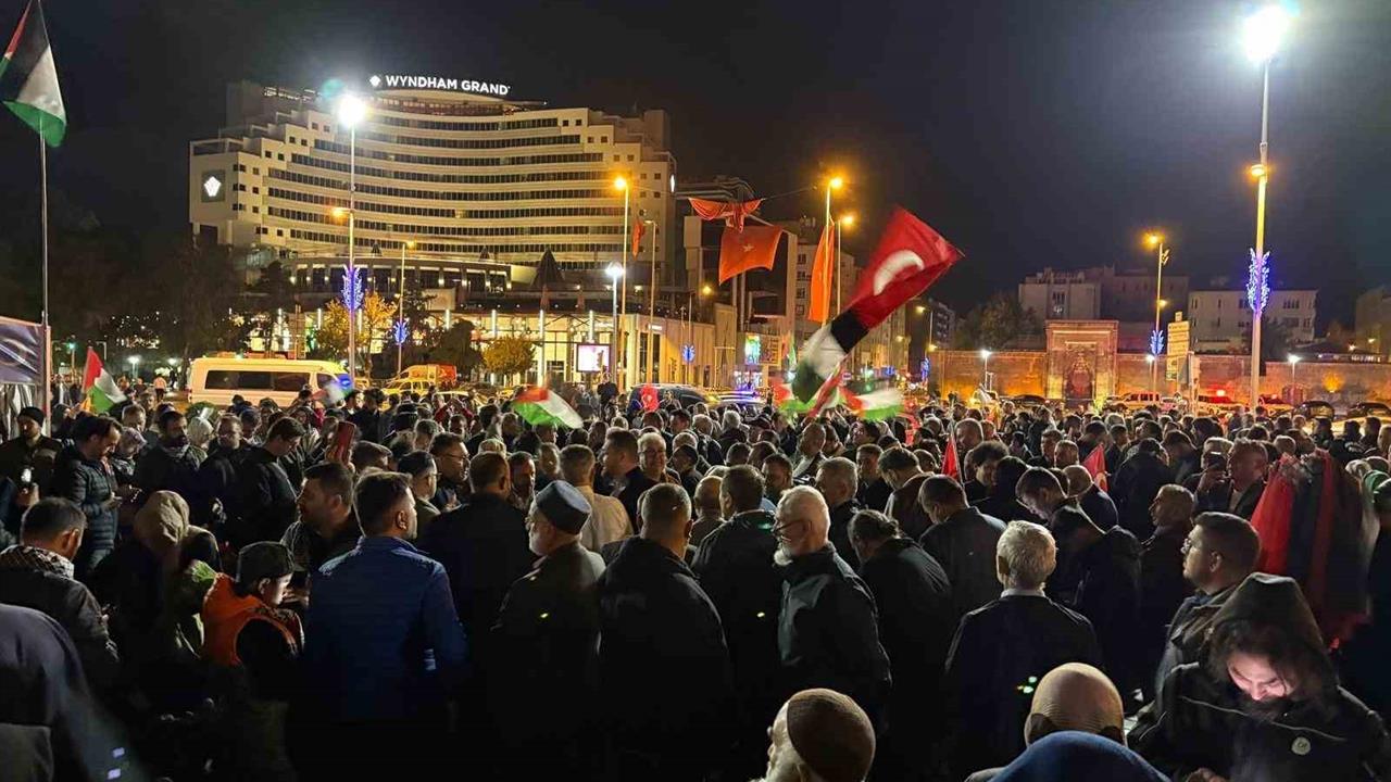 Kayseri'deki protestoya katılan vatandaşlar, İsrail'in Filistin'e yardım götüren Sumud Filosu'na müdahalesini kınadı. Cumhuriyet Meydanı'nda bir araya gelen kalabalık, İsrail aleyhine sloganlar atarken, ellerini semaya açarak Filistin'e dua etti. Bu etkinlik, bölgedeki insan hakları ihlallerine karşı duyarlılığı artırmayı amaçlıyor.