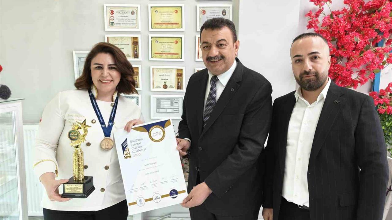 Kayseri'de 12 yıldır pasta şefliği yapan Sema Bayram, Yunanistan'da düzenlenen Southern Europa Culinary Challenge 2026 yarışmasına katıldı. Bu uluslararası yarışmada, Asya kültüründen ilham alarak tasarladığı pasta ile ilk kez yer aldı ve altın madalya kazanarak Kayseri'nin adını duyurdu. Başarısıyla Kayseri Lokantacılar ve Pastacılar Odası Başkanı Altan Aydemir'den plaket alan Bayram, bu ödülün kendilerini gururlandırdığını ifade etti. Oda Başkanı Aydemir, "Sema Bayram, hem ülkemizi hem de şehrimizi Yunanistan'da temsil ederek bayrağımızı dalgalandırdı. Pastacılar, bir sanatçı gibi eserler yaratır. Sema, yeteneği ve çalışkanlığıyla şehrimize büyük bir örnek teşkil ediyor," şeklinde konuştu.