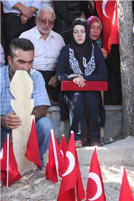 KAYSERİ - Diyarbakır’da düzenlenen terör saldırısında şehit olan Özel Harekat Polisi Muzaffer Can Ersoy (25), memleketi Kayseri’de gözyaşları arasında toprağa verildi. 1,5 yıl önce evlenen acılı eş Esma Ersoy, şehit eşine, mezar başında Kur’an dinleyerek ve sessizce durarak veda etti.