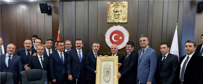 Türkiye Odalar ve Borsalar Birliği (TOBB) Başkanı Rifat Hisarcıklıoğlu ile birlikte Kayseri Sanayi Odası Başkanı Mustafa Boydak, Kayseri Sanayi Odası Meclis Başkanı Nureddin Okandan, Kayseri Ticaret Borsası Başkanı Şaban Ünlü, Kayseri Sanayi Odası Yönetim Kurulu üyeleri sanayiciler Mustafa Elitaş’ı ziyaret etti. Ziyarette Elitaş’a yeni görevinin hayırlı olması temennisinde bulunan hemşerileri tablo hediye etti.