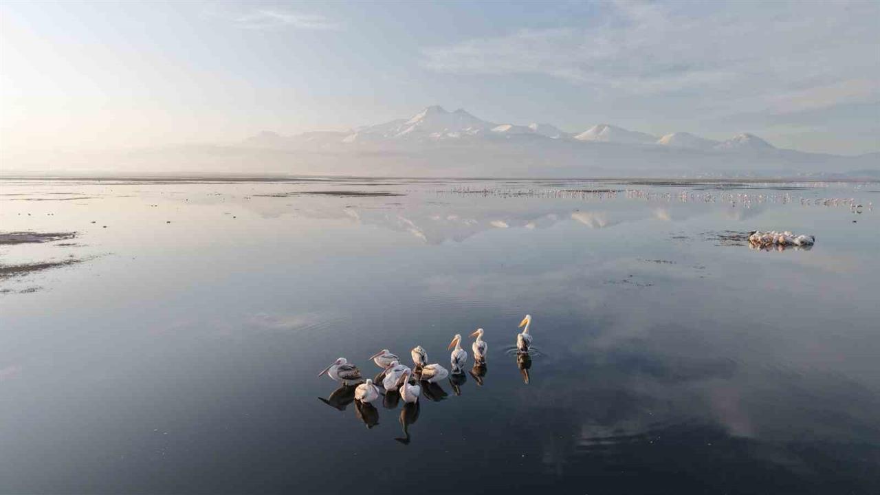 Kayseri’nin Hürmetçi Sazlığı, baharın gelişiyle birlikte pelikan ve flamingo gibi kuş türlerini misafir etmeye başladı. İlk pelikan grubu, dronla görüntülenirken, doğa sanatçısı Muhammed Emin Gürpınar, bu anları özenle kaydetti.