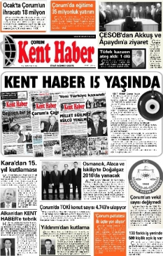 Çorum’da 6 Şubat 2001 tarihinde yayın hayatına başlayan Çorum Kent Haber gazetesi, 15. yılını okurlarıyla kutluyor.