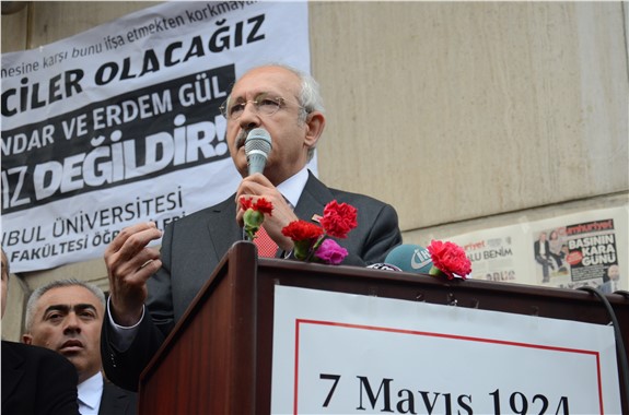 "Herkes ayakta, herkes huzursuz ve bütün bunlar ileri demokrasi söylemleri altında gerçekleşiyor." diyen Kılıçdaroğlu, Başbakan Ahmet Davutoğlu'nun sözlerine atıfta bulunarak, şöyle devam etti: "'Medya özgürlüğü bizim için kırmızı bir çizgidir' deniliyor. Hangi çizgiden söz ediyorsunuz? Çağ dışı bir anlayıştan kırmızı bir çizgi mi olur? O haber olmasaydı biz gerçekleri nereden ve nasıl öğrenecektik? Baskıyla susturmaya çalışıyorlar. Hepimizin ortak bir görevi var, demokrasimize sahip çıkacağız. Medyaya sahip çıkacağız, hukukun üstünlüğüne sahip çıkacağız."