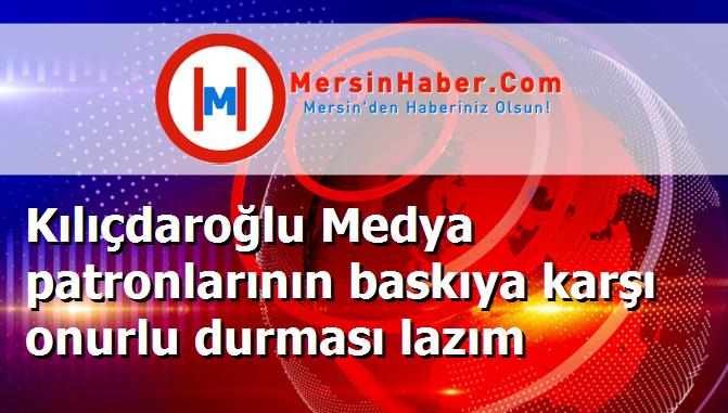 İSTANBUL - CHP Genel Başkanı Kemal Kılıçdaroğlu, iktidarın bazı medya gruplarına yönelik baskısına sert tepki gösterdi. Baskıya karşı medya patronlarının dik durması gerektiğini söyleyen Kılıçdaroğlu, “Baskıya karşı onurlu durması lazım, ödün vermemesi lazım. Medyaya yönelik iktidar kanadından bir baskı gelirse bütün medya organlarının ortak ses çıkarması lazım. Bugün sizin başınıza gelen yarın başkasının başına gelebilir.” dedi.