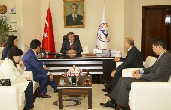 Kırgızistan Cumhuriyeti Ankara Büyükelçisi İbragim Dzhunusov ve Kırgızistan Kayseri Fahri Konsolosu Dr. Mustafa Kurt, bu yıl Kayseri’de düzenlenen geleneksel futbol turnuvasını izlemek amacıyla kente geldiler. Ziyaret sırasında Erciyes Üniversitesi Rektörü Prof. Dr. Fahrettin Keleştemur ile bir araya geldiler. Ziyarete, büyükelçinin eşi Chinara Satybaldieva, Kırgızistan Kayseri Fahri Konsolosu Dr. Mustafa Kurt, büyükelçi müsteşarı Meder Abakırov, ticaret ateşi Aizhan Tabaldieva ve Uluslararası Sivil İnisiyatif Gazetesi Müdürü Zeliha Sorkunlu da katıldı.