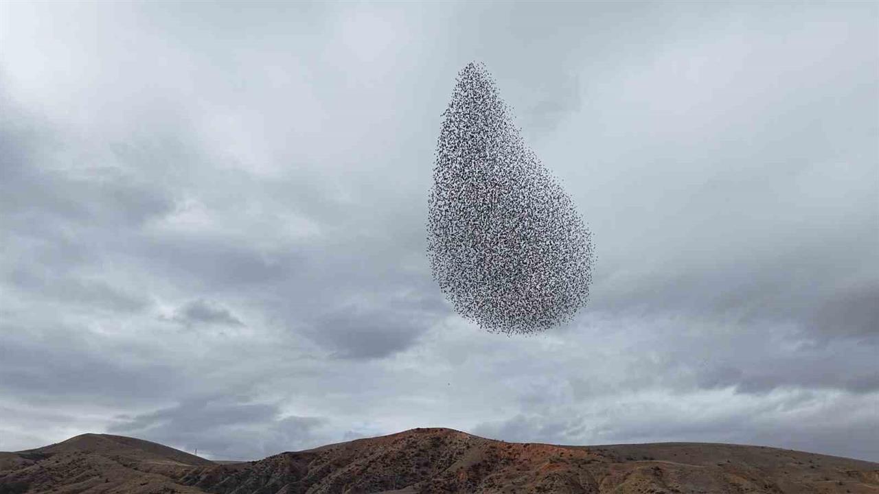 Kırıkkale Merkez'de, sığırcık kuşlarının oluşturduğu bu görsel şölen, özellikle sabah saatlerinde daha belirgin hale geldi. Sürü halinde uçan kuşlar, gökyüzünde adeta bir gösteri yaparak, şekiller ve figürler oluşturdu. Katı Atık Depolama Tesisi çevresinde yoğunlaşan kuşlar, uyumlu hareketleriyle izleyenleri büyüledi. Kuşların toplu uçuşları, gökyüzünde bir dans edasıyla sürerken, bu anlar, drone ile kaydedildi. Edinilen bilgilere göre, bu tür gösteriler, sığırcıkların göç döneminde sıkça gözlemleniyor. Kuşların bu görsel şöleni, doğa tutkunları ve fotoğraf severler için eşsiz bir deneyim sundu. Sığırcıkların bu hareketliliği, yaz aylarının gelmesiyle birlikte daha da artacağı öngörülüyor. Kırıkkale halkı, bu doğal güzellikleri izlemek için bölgeye akın etti ve anı ölümsüzleştirmek için fotoğraflar çekti.