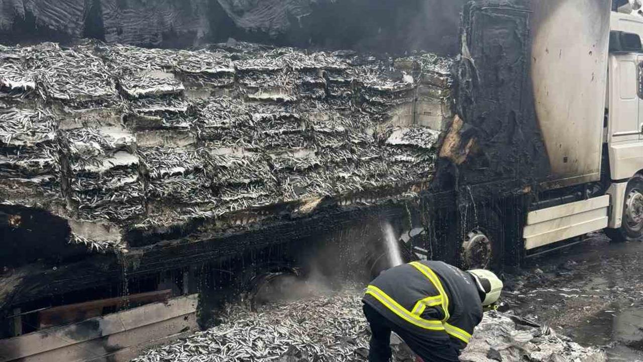 Kırklareli'nin Pınarhisar ilçesinde, İslambey köyü mevkiinde meydana gelen yangında, hamsi yüklü 51 KV 160 plakalı tırın sürücüsü, aracın lastik kısmından duman çıktığını fark etti. Hemen durarak aracı yol kenarına çeken sürücü, durumu itfaiye ekiplerine bildirdi. Olay yerine hızla intikal eden itfaiye ekipleri, alevlere müdahale ederek yangını kontrol altına aldı.
