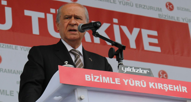 Bahçeli, Türkiye'yi zor durumda bırakan mevcut iktidara karşı durmanın vaktinin geldiğini ve rüşvetçi ile bölücü unsurlara karşı duracaklarını ifade etti. Kırşehirli esnaf, işçi ve emekli için mücadele ettiklerini belirten Bahçeli, MHP'nin iktidara yürüyüşünü vurguladı. "HDP ile MHP rüyada bile yan yana gelmez" diyerek, HDP'nin politikalarını eleştirdi.