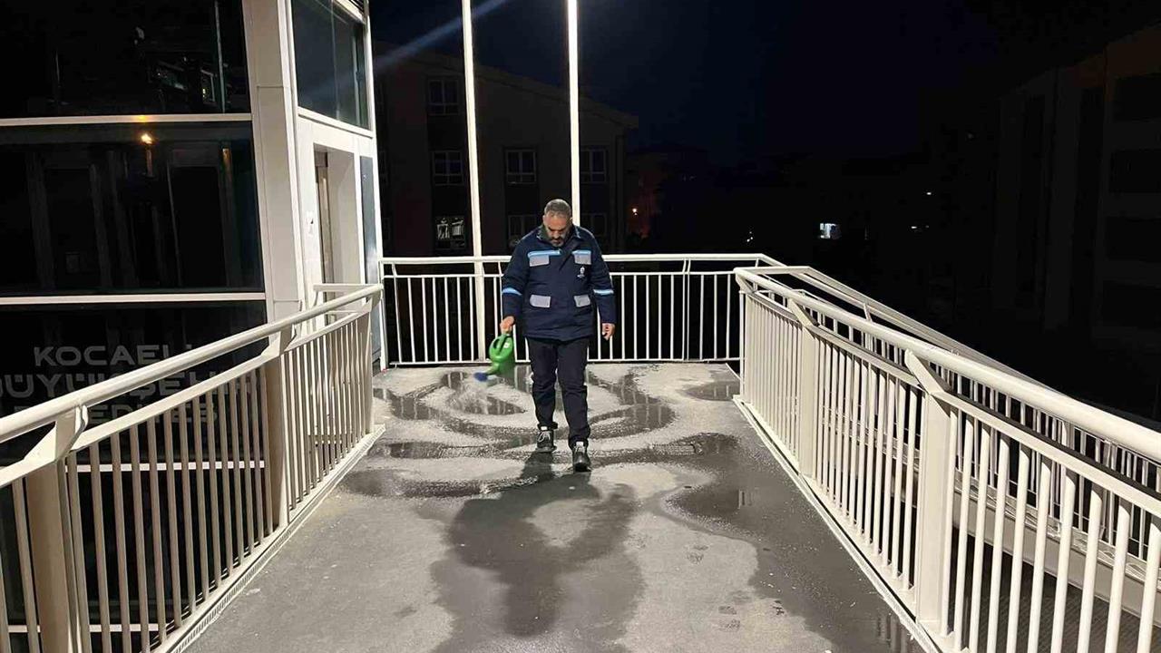 Kocaeli Büyükşehir Belediyesi, son günlerde etkili olan soğuk hava şartlarına bağlı olarak oluşabilecek buzlanmaya karşı hazırlıklarını artırdı. Belediye ekipleri, şehir genelinde mutlaka önlem alınması gereken alanlarda titiz çalışmalar yürütüyor. Muhtemel kazaların önüne geçmek amacıyla, hastane girişleri, yürüyen merdivenler ve üst geçitlerde özel solüsyon uygulamaları gerçekleştiriliyor.