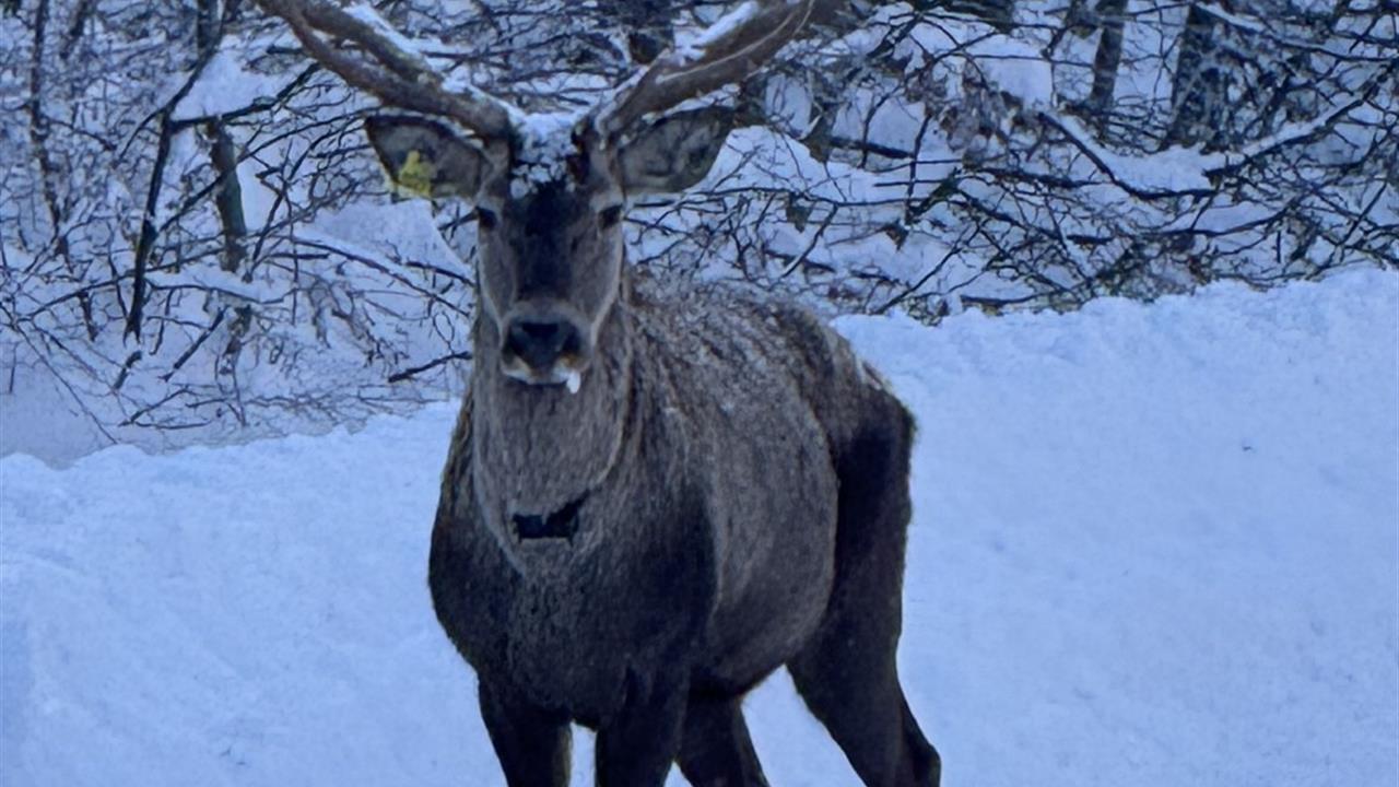 Kocaeli'de doğaya bırakılan kızıl geyikler, kar yağışının ardından Kartepe'de görüntülendi. Projeyle birlikte Samanlı Dağları'ndaki popülasyon artırılmakta.
