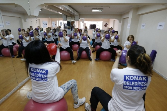 Konak Belediyesi, spor merkezlerinde düzenlenen step, aerobik ve pilates kursları ile kadınların hem fiziksel hem de ruhsal sağlıklarını destekliyor. Bu kurslara katılan kadınlar, zayıflamanın yanı sıra günlük yaşamın getirdiği stresi de azaltma fırsatı buluyor. Belediyenin farklı semtlerde kurduğu 10 spor merkezi, her yaştan kadına hizmet veriyor. Bu merkezlerde haftada beş gün, uzman eğitmenler tarafından spor dersleri sunuluyor. 18 yaşından 70 yaşına kadar birçok kadın, bu kurslardan ücretsiz faydalanarak sosyal yaşama katılıyor.