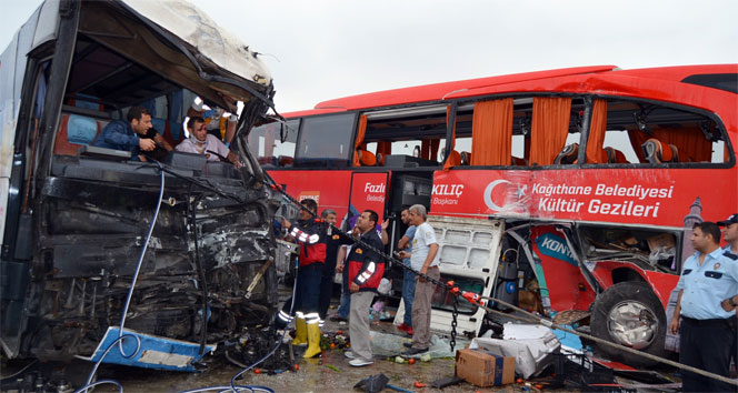 Kaza, akşam saatlerinde Konya Ankara Karayolu üzerindeki Kulu Makas mevkisinde bulunan bir dinlenme tesisinin önünde gerçekleşti. Edinilen bilgilere göre, Ankara'nın Şereflikoçhisar ilçesinden seçim çalışmasından dönen Bora Büyüktürk yönetimindeki 06 DV 403 plakalı AK Parti seçim otobüsü, yol kenarındaki dinlenme tesisinde durmak istedi. Ancak, otobüs kontrolden çıkarak tesis bahçesinde park halinde bulunan 34 JZ 5040 plakalı yolcu otobüsüne ve dinlenme tesisine ait, erzak boşaltan minibüse çarptı.