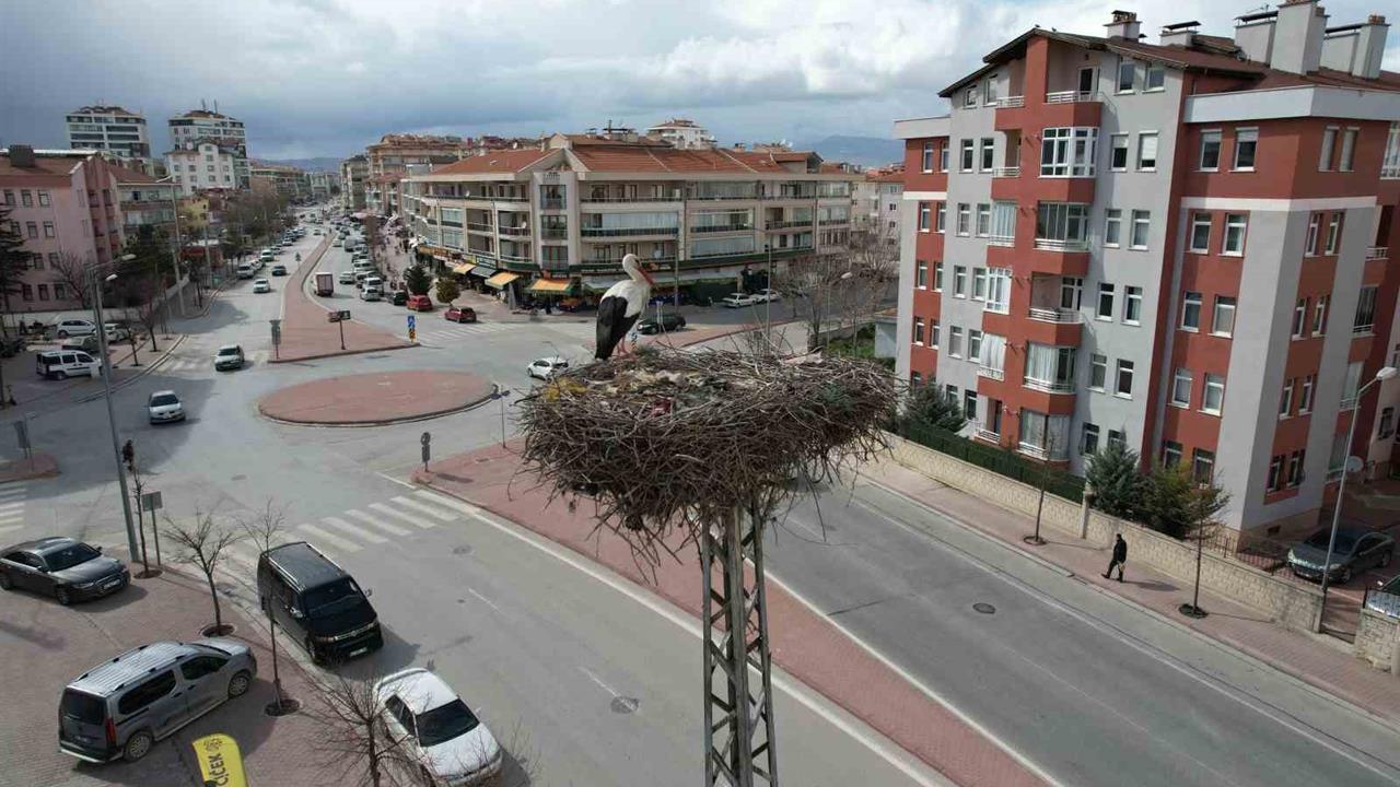 Konya'nın Karatay ilçesinde, Cemil Çiçek Caddesi üzerindeki Akabe Çayır Camisi'nin yanındaki elektrik direği, her yıl mart ayında gelen leylekler için önemli bir yuva haline geliyor. Bu yıl da leylekler, aynı noktada yuvalarına yerleşerek, burada konaklamaya başladı. Yuva içerisinde bulunan leylekler, yumurtlayarak yavrularını büyütme sürecine girecek. Ardından havaların soğumasıyla birlikte sıcak bölgelere göç etmeleri bekleniyor. Mahalle sakinleri, leyleklerin bulunduğu direği yakından takip ederek, bu doğal olayı ilgiyle izliyor. Leylekler, havadan dron ile de görüntülendi.