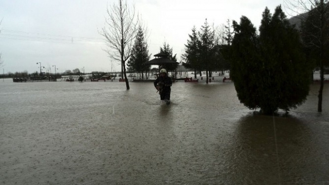 Konya’nın Seydişehir ilçesinde akşam saatlerinde etkili olan sağanak yağış, özellikle ekili alanlara ciddi zarar verdi. Bu durum, Kuğulu Park’ın tamamen su altında kalmasına yol açtı. Akçay deresi taşma noktasına geldi ve ilçenin birçok yerinde su birikintileri oluştu. Parkta bulunan ördekler, havuzlardaki suyun dolup taşması nedeniyle karada gezmek zorunda kaldı. Ayrıca, çöp konteynerlerinin su altında kalması, yiyecek arayan köpeklerin mahsur kalmasına neden oldu. İtfaiye ekipleri, bu köpekleri kurtarmak için hızlı bir müdahale gerçekleştirdi.