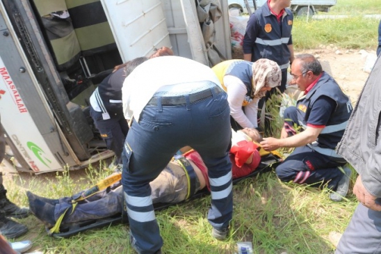 Konya'nın Yunak ilçesinde, sürücüsünün direksiyon hakimiyetini kaybetmesi sonucu yem yüklü kamyon şarampole devrildi. Edinilen bilgilere göre, Onur B. (23) yönetimindeki 42 U 3247 plakalı kamyon, kontrolden çıkarak şarampole yuvarlandı. Kazada, sürücü Onur B. ile kamyondaki yolcu Çağlar A. (22) yaralandı. Olayı gören vatandaşlar, durumu itfaiye ve jandarmaya bildirdi. İtfaiye ekipleri, Onur B.'yi sıkıştığı yerden kurtararak, her iki yaralıyı Yunak Hacı İzzet Baysal Devlet Hastanesi'ne kaldırdı. Yaralıların sağlık durumlarının iyi olduğu öğrenildi. Kazayla ilgili soruşturma başlatıldı.