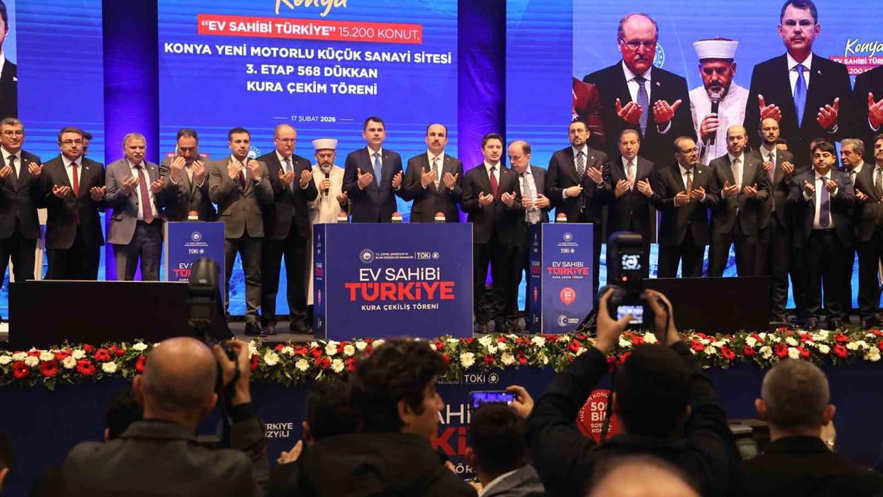 Çevre, Şehircilik ve İklim Değişikliği Bakanı Murat Kurum, Konya'da düzenlenen kura çekim töreninde, projelerle ilerlediklerini ve şehirleri güvenli hale getirmek için çalışmalar yaptıklarını dile getirdi. Törende, "Ev sahibi Türkiye" projesi çerçevesinde inşa edilecek 15 bin 200 konutun kura çekimi gerçekleştirildi. Tören, Selçuklu Kongre Merkezi’nde İstiklal Marşı ve Cumhurbaşkanı Recep Tayyip Erdoğan’ın mesajının okunmasıyla başladı. Bakan Kurum, Konya’ya yeni eserler kazandırmak için çaba sarf ettiklerini belirtti.