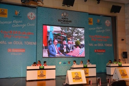 Konya Büyükşehir Belediyesi ve Konya İl Milli Eğitim Müdürlüğü tarafından yürütülen Medeniyet Okulu Projesi çerçevesinde düzenlenen "Haydi Bil Bakalım Bilgi Yarışması" finali, Mevlana Kültür Merkezi'nde gerçekleştirildi. Yarışmada, çeyrek ve yarı finalde başarılı olan Çeltik Honamlı Ortaokulu, Karapınar Cumhuriyet Ortaokulu ve Selçuklu Kaşgarlı Mahmut Ortaokulu öğrencileri mücadele etti. Yarışmaya canlı bağlantıyla katılan Konya Büyükşehir Belediye Başkanı Tahir Akyürek, finale kalan okulları tebrik ederek, öğrencilere Viyana'ya gezi düzenleme müjdesini verdi. Konya İl Milli Eğitim Müdürü Mukadder Gürsoy, tüm katılan okulları kutlayarak, öğrencilerin başarılarının önemine vurgu yaptı. Yarışma sonucunda Çeltik Honamlı Ortaokulu il birincisi, Selçuklu Kaşgarlı Mahmut Ortaokulu il ikincisi ve Karapınar Cumhuriyet Ortaokulu il üçüncüsü oldu. Ayrıca, daha önceki resim ve şiir yarışmalarında dereceye giren öğrenciler de ödüllendirildi. Final törenine, birçok öğretmen ve öğrenci ile birlikte ilçe milli eğitim müdürleri de katıldı.