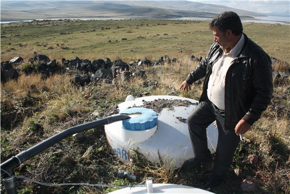 Arpaçay İlçesine 8 kilometre mesafede olan Taşbaşı köyü sakinlerinden İbrahim Maşa, tren yolu çalışması nedeniyle ana şebekelerinin bozulduğunu belirterek, "Dereden kendi imkanlarımızla su getiriyoruz. 2015 yılında dere suyu ile idare ediyoruz." dedi.
