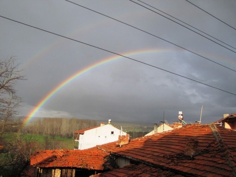 Kütahya'nın Hisarcık ilçesinde aralıklarla yağan yağmur, akşam saatlerinde güneşin yüzünü göstermesiyle birlikte gökkuşağının oluşmasına zemin hazırladı. Arpalık mevkiinde beliren bu muhteşem manzara, görenleri adeta büyüledi. Rengarenk görüntüsüyle dikkati çeken gökkuşağı, birçok kişi tarafından ilgiyle izlendi. Özellikle o anları ölümsüzleştirmek isteyen bazı vatandaşlar, cep telefonlarıyla bu anı kaydetmek için yarıştı. Gökkuşağının sunduğu bu doğal güzellik, ilçede keyifli anlara sahne oldu.