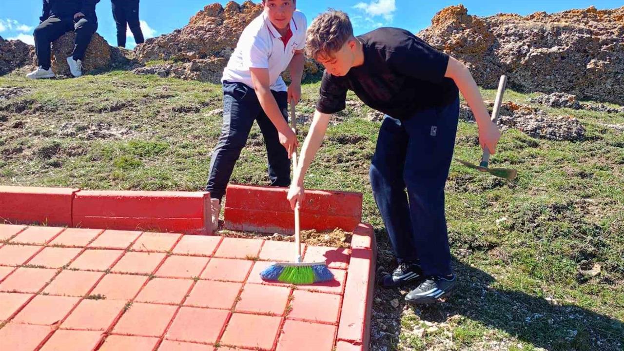 Kütahya'nın Seyitömer beldesinde, 23 Nisan Haftası etkinlikleri kapsamında Seyitömer Ortaokulu öğrencileri, Türk bayrağının bakımını üstlenerek anlamlı bir çalışmaya imza attı. Türk bayrağının bulunduğu tepenin temizliğini gerçekleştiren öğrenciler, duyarlılıklarıyla dikkat çekti. Bu etkinlik, müdür yardımcısı Ramazan Öğütel ve beden eğitimi öğretmeni Gürkan Çelik'in öncülüğünde yapıldı. Öğrenciler, fırçalarla bayrağın bulunduğu zemini titizlikle temizleyerek bayrağa olan saygılarını gösterdi.