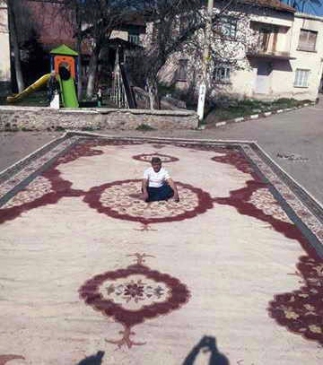 Kütahya'nın Simav ilçesinde, Cumhurbaşkanlığı Sarayı'nın zeminini süsleyecek olan iki adet el halısı, 18 kadın tarafından 3 ay boyunca titizlikle dokundu. Halılardan biri 85, diğeri ise 59 metrekare boyutunda. Dokunan halılar, ilçede uygun bir yıkama tesisi bulunmadığı için Niğde’nin Aksaray ilçesindeki Sultanhanı beldesine gönderildi. Siparişi alan 35 yıllık halıcı Tahir Çetin, halılar için 18 kadına yaklaşık 50 bin TL işçilik ücreti ödendiğini açıkladı. Çetin, “Bu halılar, 18 ev hanımının el emeğiyle dokundu ve Simav sevgisini de barındırıyor. Cumhurbaşkanımız Recep Tayyip Erdoğan güle güle kullansın diye özenle çalıştık” dedi. Halılar, üretim sürecinin ardından bir gün süreyle halka sergilendi. Çetin, Simav'da el halısı dokuma geleneğinin azalmasına rağmen, bu devasa halıların başarıyla tamamlandığını belirtti. Halıların yıkanmasının ardından pek çok vatandaş sergi sırasında hatıra fotoğrafları çektirdi. Simav'dan dokunan halıların, Cumhurbaşkanlığı Sarayı'na katkı sağladığı için mutluluk duyduklarını vurguladı.